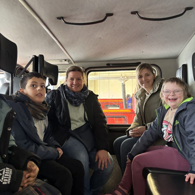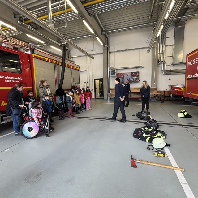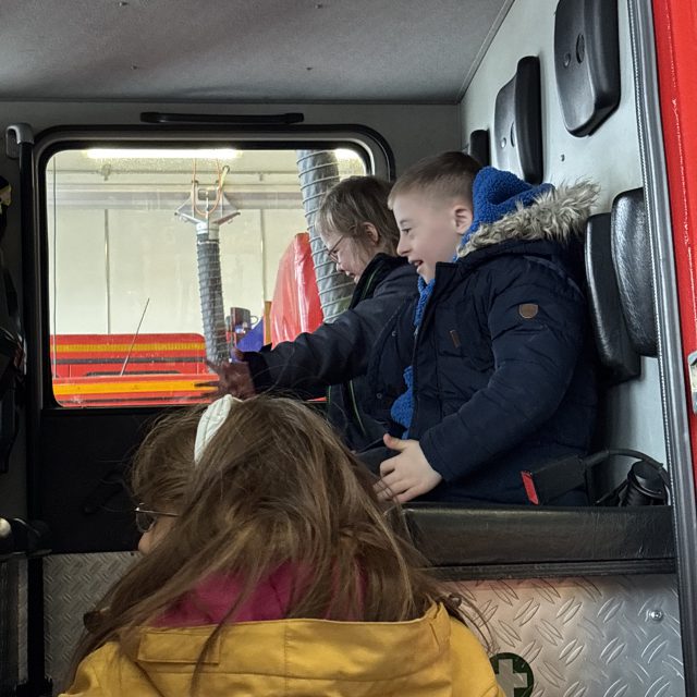 Dort wurde ihnen gezeigt wie ein Feuerwehrmann sich bei einem Alarm anziehen muss oder aber was sich alles in so einem Feuerwehrauto versteckt.